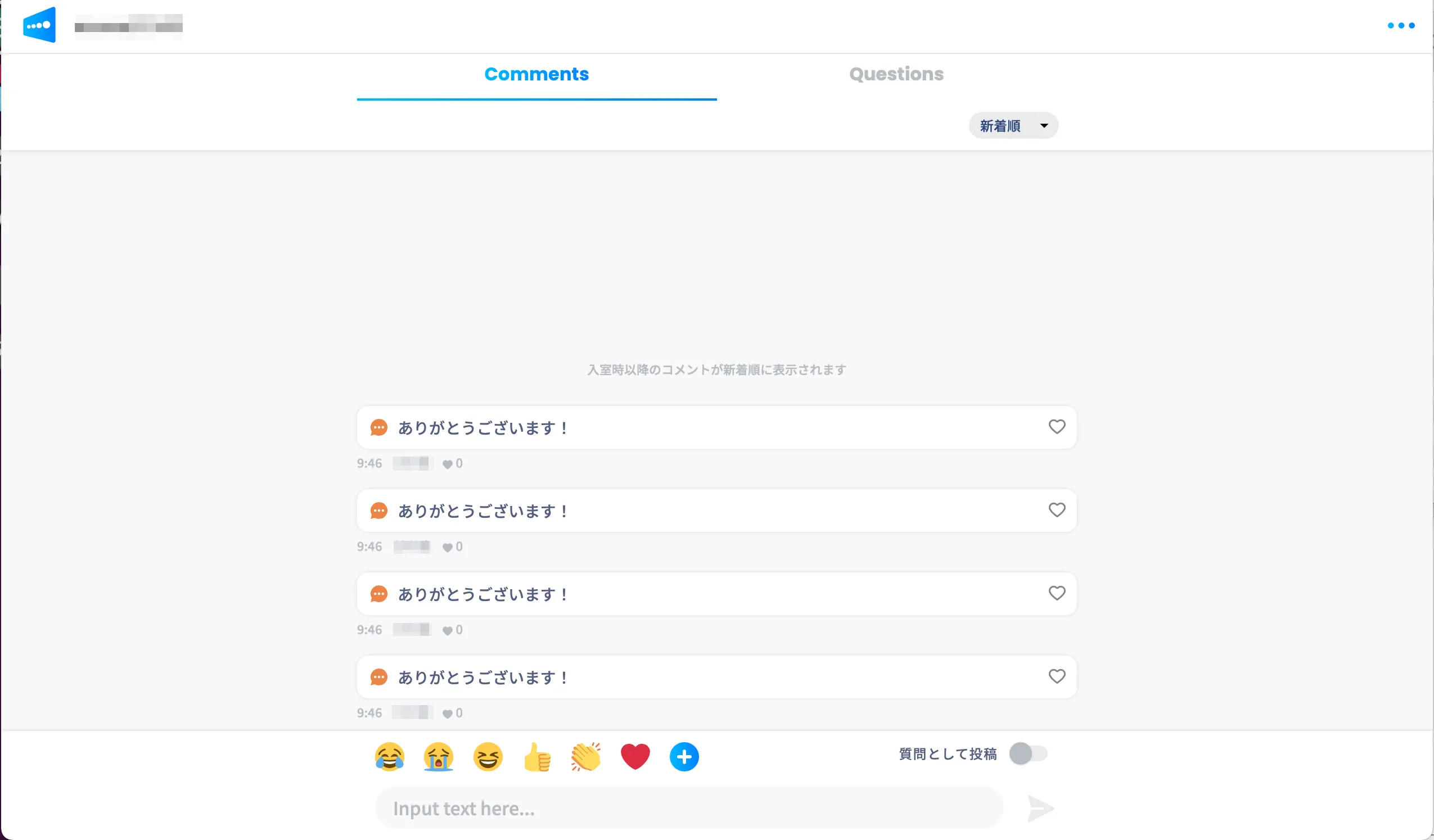 教員から共有されたリンクを開くか,またはQRコードを読み取ることで,学生は以下の画面に飛ぶことができます.この画面でコメントを寄せたり,スタンプを押したりすることで,教員の画面に表示され,全体に共有されます.