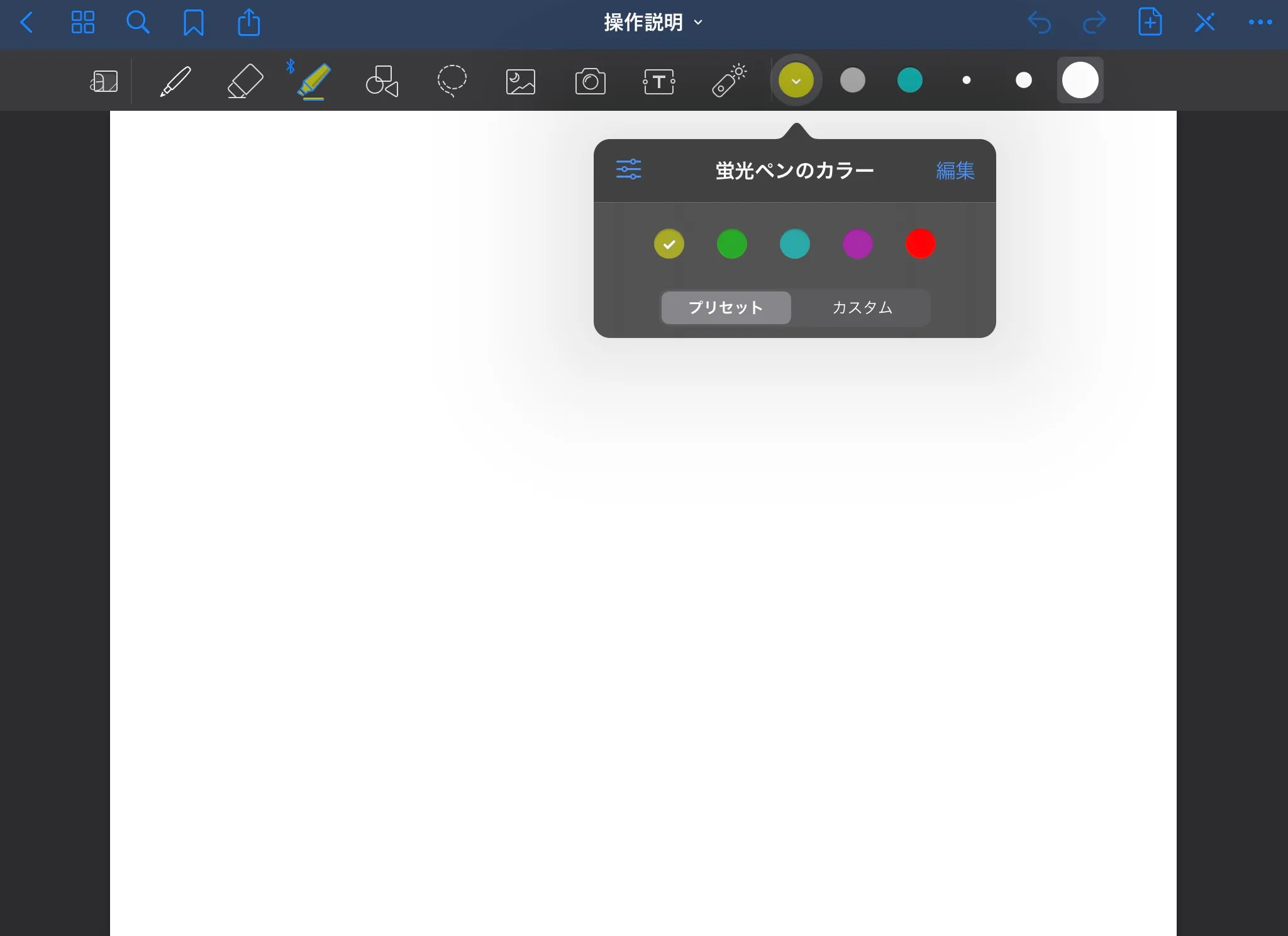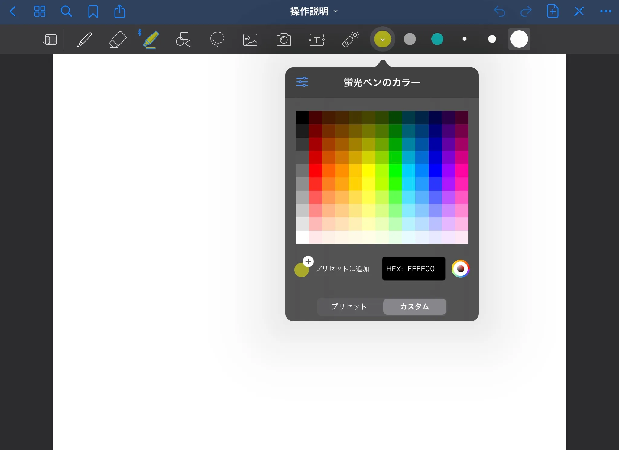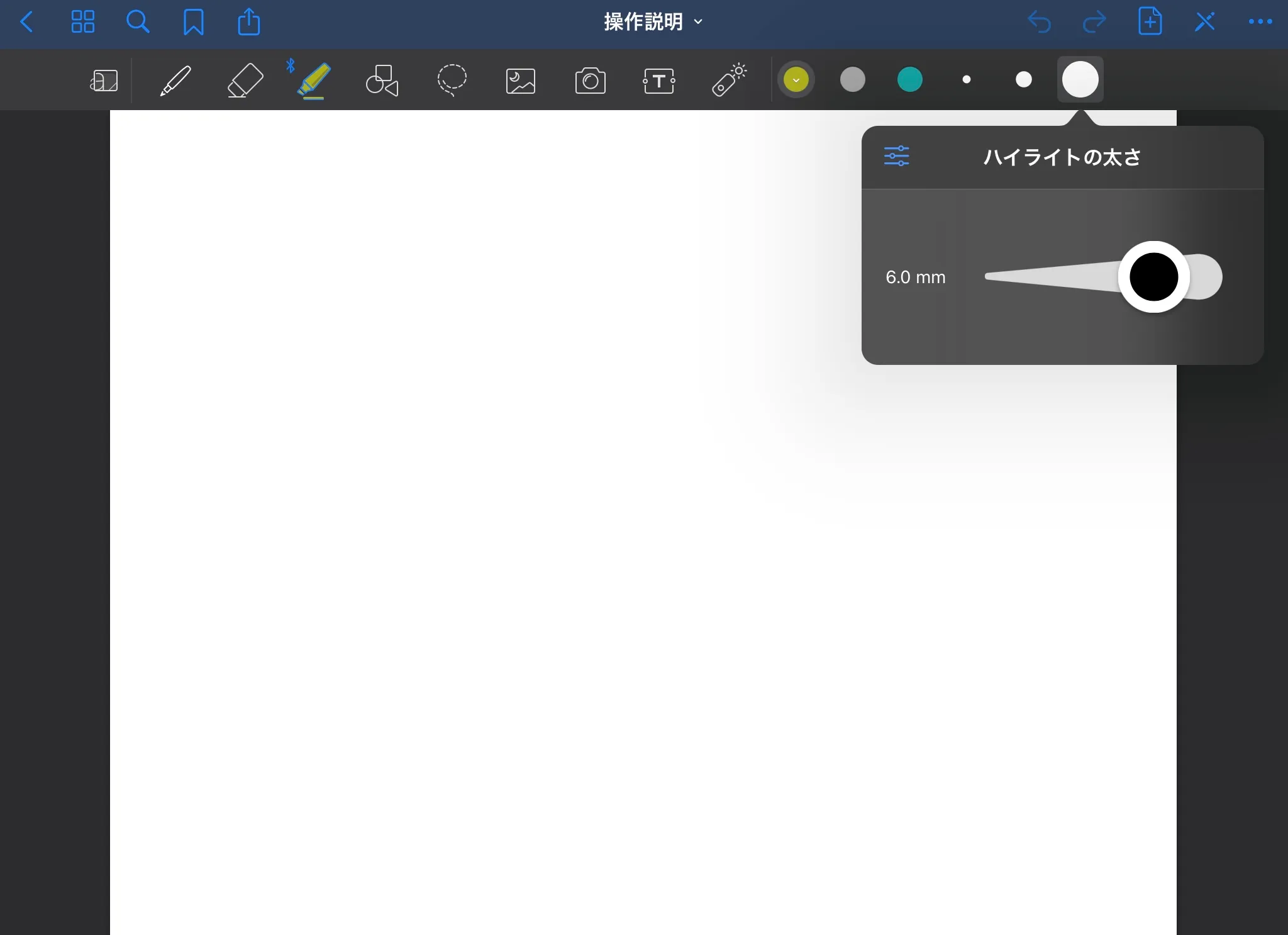 ペンツールと同じく,下の画像のように蛍光ペンのカラーや太さを変更することが可能です.