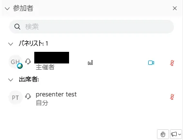 • Panelist: You can answer Q & A from participants, and can also mute/unmute yourself.