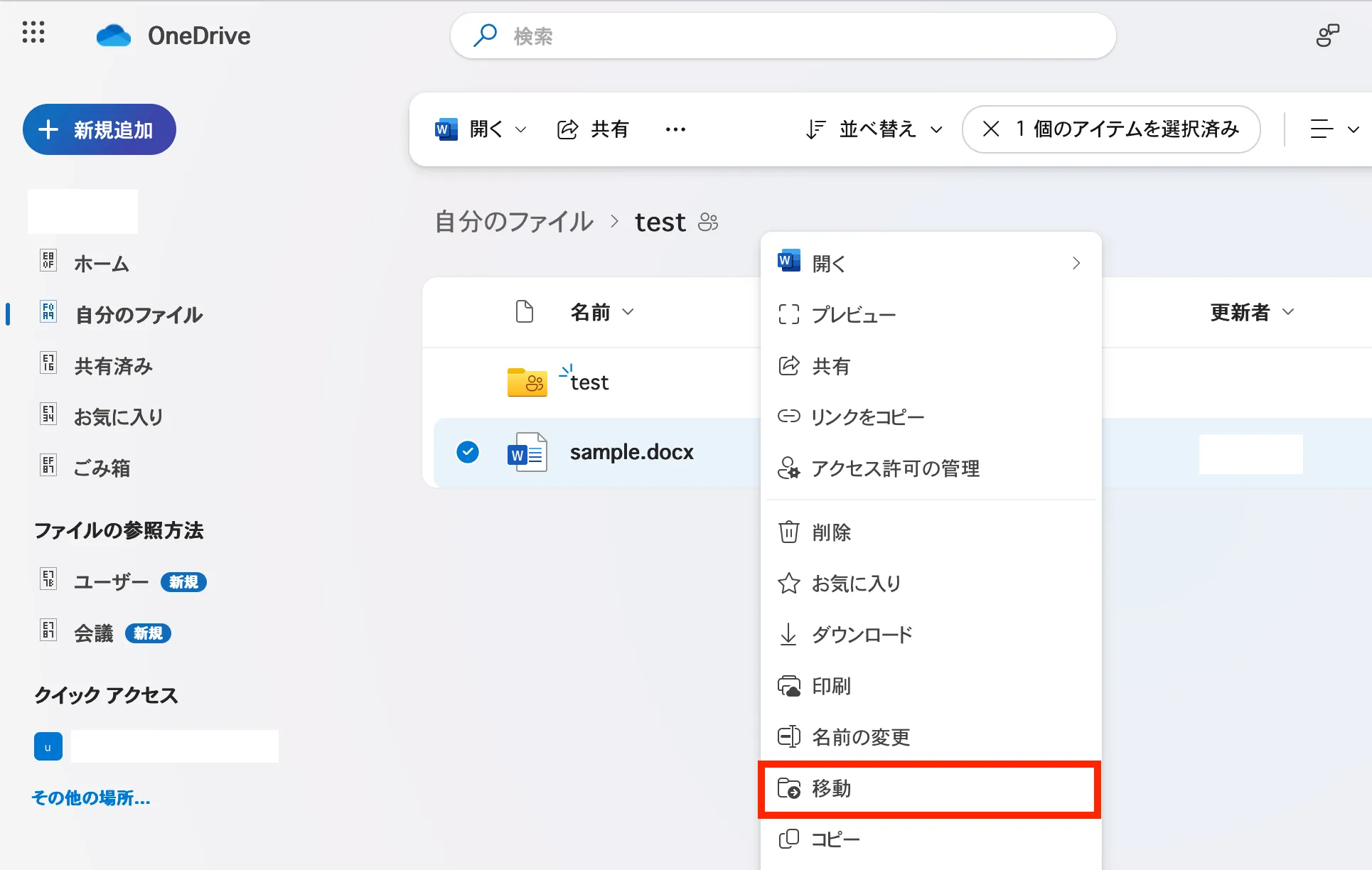 1. 移動させたいファイルを右クリックし,「移動」を押してください.
