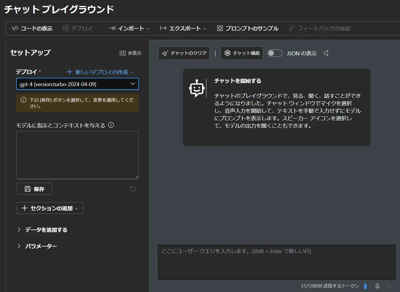 • チャットプレイグランドが下図のようになりましたら完了です.